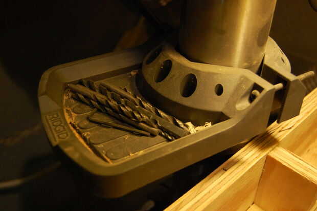 ¿Tienes una de estas cosas de la bandeja en el taladro? Si es así, ¿qué es lo? El mío es bastante inútil como una cerveza... Me refiero a sostenedor de taza. Yo diría que casi tan inútil como la corredera sostenedor de la bebida en mi vieja computadora de escritorio. Para un rato puse mi más utilizan pedacitos aquí y entonces todavía tenía que conseguir un microscopio para encontrar el diámetro grabado marcado en cada poco... o romper las pinzas.