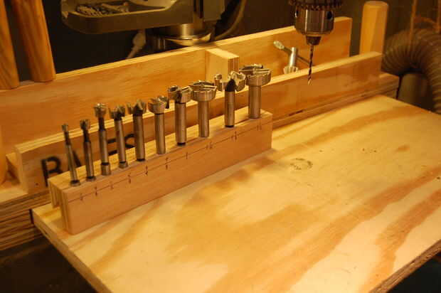 La última foto muestra la laminación de madera para alojar brocas de diámetro más grande.