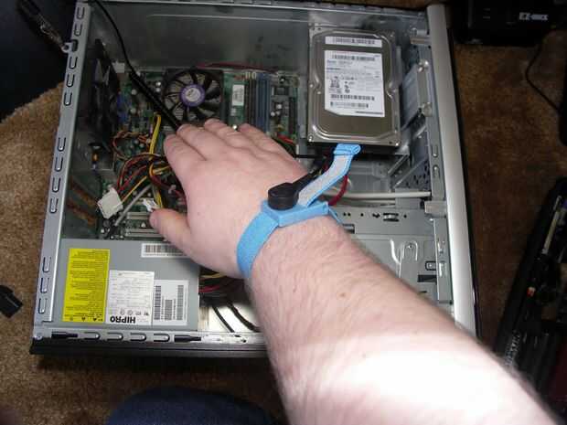 Usted querrá usar una correa de la tierra para asegurarse de que usted no daña nada dentro de la computadora con electricidad estática (componentes de la computadora pueden dañarse con tan poco como 50 V de electricidad estática y se necesita al menos 250 V antes de que podemos sentir; si no me equivoco). Resbalón de la correa alrededor de su mano para que sea en la muñeca tocando la piel desnuda, luego conecte la pinza cocodrilo a una parte de la caja de metal para el equipo.