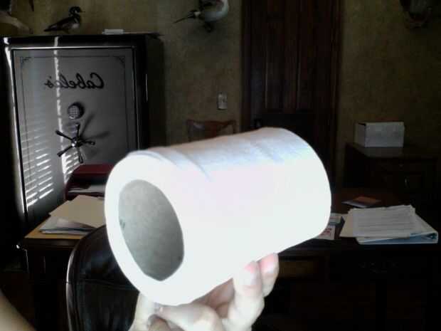 Aprendí esto de un compañero de trabajo que había miedo a su hija adolescente con él. Se trata de una simple broma que se puede hacer rápidamente y en cualquier lugar puede encontrar papel higiénico (o toallas de papel). Simplemente es dibujar una ar