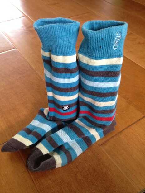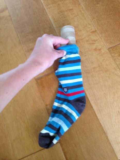 El rollo de papel higiénico y ponerlo dentro del calcetín a la parte del talón del calcetín.