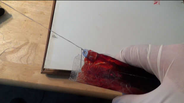 * Una vez llena de sangre, recorte de la bolsa que no necesitan y ruede para arriba. con la cinta mantienen unida.
