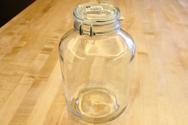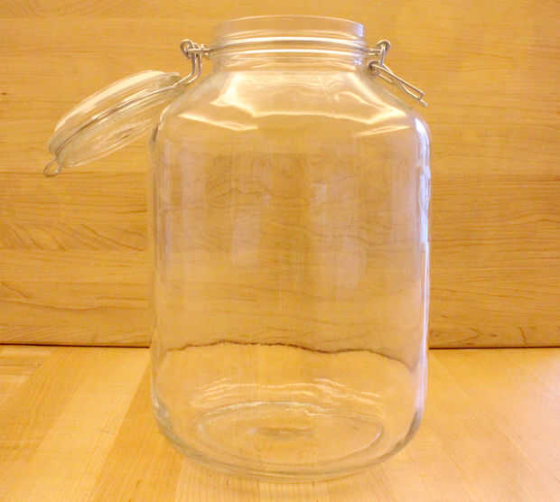 Usted necesitará un frasco lo suficientemente grande para su imagen. Conseguí este frasco de vidrio de 5 litros en mi ferretería local por $15.