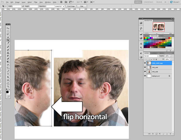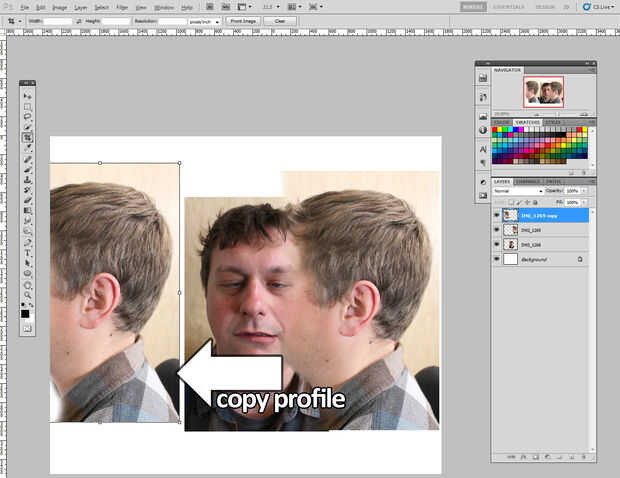 Con un lado terminado, hacer un copia/duplicado del perfil y pegar en una nueva capa. La copia del tirón horizontalmente y pasar al otro lado de la fotografía de retrato.