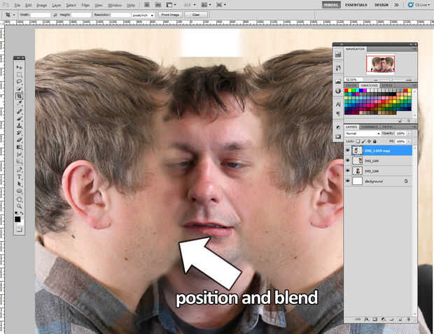 Puede que necesite ajustar los niveles de la capa duplicada coinciden con el retrato, y utilizar la herramienta Borrador para porciones lejos pluma del perfil duplicado para mezclar en el retrato.
