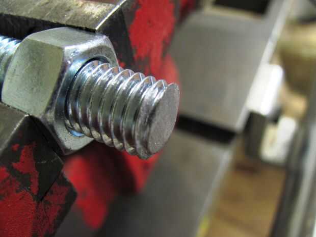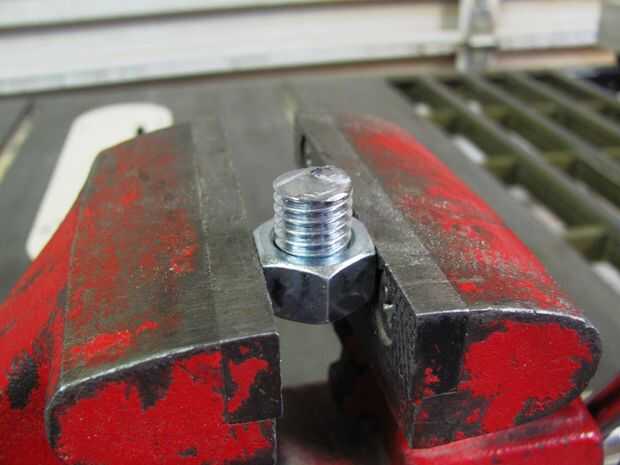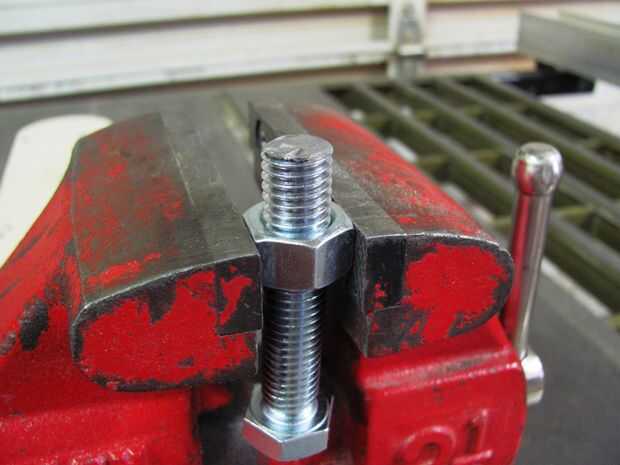 Al finalizar se corta la pieza de que desee hacer el corte final tan plano y tan posible. A cabo aún cuando se presentó atornilla parcialmente en la tuerca y atornillar el resto del perno en el otro lado, después de mano apretarlo era lo suficientemente seguro para poner de nuevo en la prensa y comenzar la presentación.