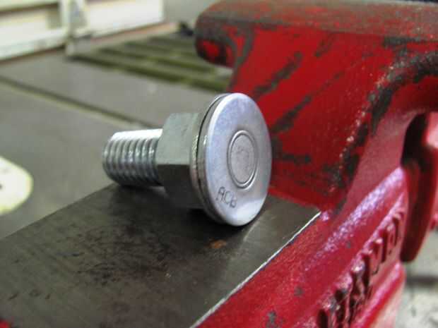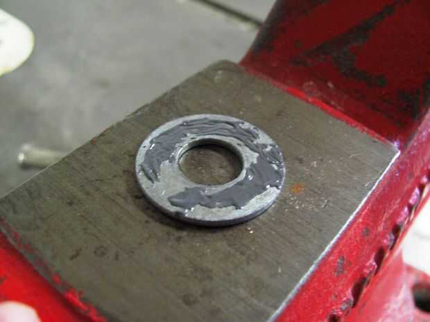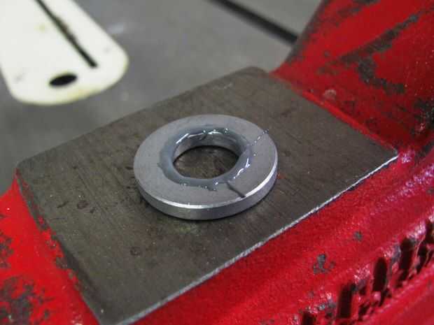 Con el imán soldado con autógena en lugar será más fácil soldar la arandela a la cabeza. Poner una pequeña cantidad de soldadura J.B. alrededor del interior perímetro de la arandela de 1/2", trate de ponerlo sólo en el lado plano y no el interior borde. Recuerde que el imán lo atraerá.
