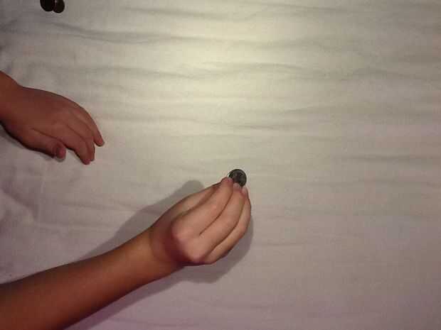 Para hacer la moneda reaparezca tomar la mano que tiene la moneda y colocarla detrás de la oreja de alguien o en su camisa o donde siempre quieres colocarlo y empuje la moneda con el dedo pulgar (Foto 1) donde la mitad de la moneda es expuesto (cuadro 2). Entonces saque su mano de donde estaba y afirman que lo hizo aparecer!