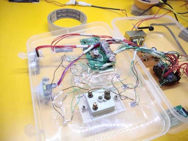 Ya hay una toma de corriente presente en la caja, el cable conectado a él siempre lleva corriente alterna que puede ser conectado accidentalmente a cualquiera de los sensores o los cables pelados. Todos los sensores y arduino funcionan a 5v, que es mucho menos el peligroso 240v. Así que ya te imaginas qué ocurre cuando algo llega a ser verdad.