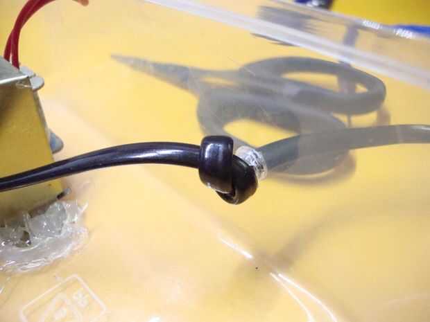 Para esto, primero hacer un pequeño agujero en la caja para el cable de enchufe pasar a través. Pasar el canal de cable de la caja y hacer un pequeño nudo dentro de la caja para que no salgan el cable de tracción. Ahora Conecte ambos los alambres del cable al transformador en cualquier manera.