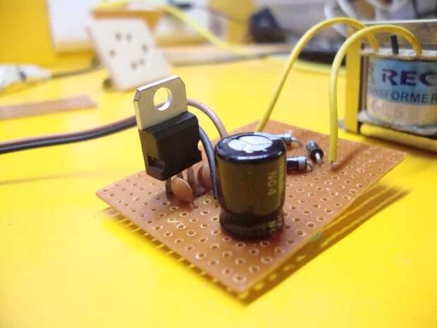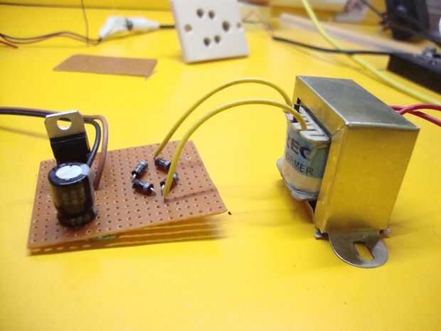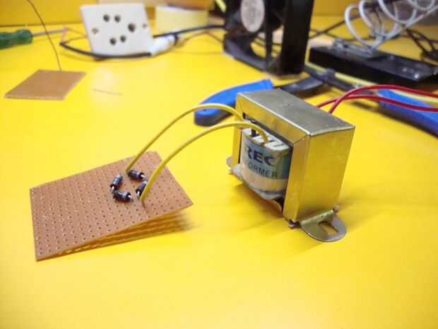 La soldadura de las piezas en un perfboard según el esquema dado anteriormente. Conecte un cable de alimentación a los cables de la bobina primaria de su transformador y enchúfelo en una toma de corriente de CA. Asegúrese de que usted Identifique correctamente las bobinas primarias y secundarias de su transformador. Conectar de forma incorrecta puede causar problemas graves. Extraer tres cables de la fuente de alimentación-gnd, 12v, 5v. Comprobar con un multímetro si su fuente está funcionando o no. Usted también puede conectar y conducido a comprobarlo.