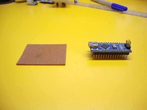 Tomar una pequeña parte de perfboard y soldar algunos encabezados femeninas que todos los pasadores de tu arduino caben fácilmente. Ahora soldar algunos encabezados masculinos correspondiente a cada pin del arduino. Conecte el encabezado de cada hombre a su pin correspondiente. Añadir algunos encabezados adicionales para gnd y 5v pin como estos se utilizan más para las conexiones.