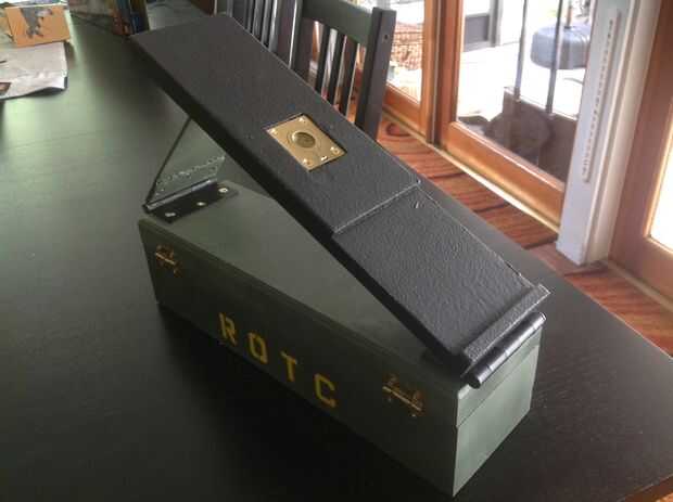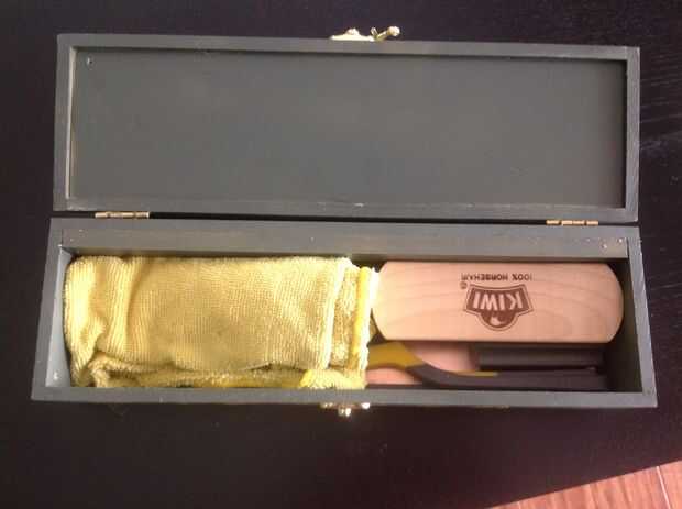 Pinté el soporte de pie con eso negro de goma del lacre para la durabilidad de la pintura. Puse un pedazo delgado de hoja de cobre en la parte inferior de la caja para cualquier zapato brillo cosas podrían ser fácilmente eliminado. Pensamiento también parecía fresco y tenía algunos restos ahí.