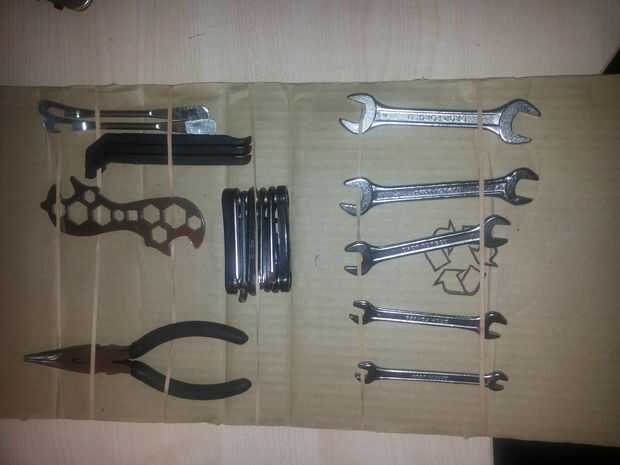 Acaba de poner sus bandas de goma alrededor de la lámina de cartón. No hay ninguna forma específica para hacerlo, sólo tratar de acomodar todas tus herramientas. Intentar and...try de nuevo...