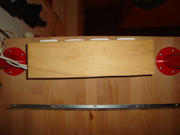 • UNA DE LAS CUATRO PIEZAS DE MADERA DIBUJA 4 CÍRCULOS Y LUEGO PERFORARLOS