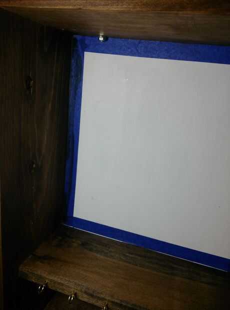 Con todos los pasos mencionados en el retrovisor que decidí ir en la parte posterior y hacer algunas alteraciones. En primer lugar, he pintado la parte trasera con alguna pintura acrílica blanco mate. Hice esto por dos razones: en primer lugar, había pensado sobre decoupaging una vista explotada de una cerradura en el interior de la caja (que puede todavía hacer, pero no has encontrado una foto puedo confirmar 100% que todavía) y el acrílico permitirá una mejor adherencia de la podge. En segundo lugar, en tanto que pensé que un color más brillante interno haría que las cerraduras "pop!" Que creo que no. Por lo tanto, no he se arrepiente.