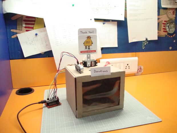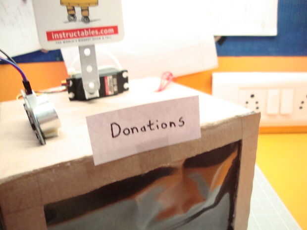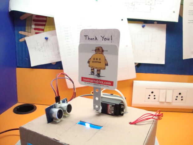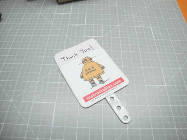 Aunque no sea muy necesario, puede ser que vale la pena añadir algunos toques finales a su proyecto con el fin de darle un aspecto de masa. Lo único que hay que añadir es un pequeño mensaje fijado al servo que onda junto con el eje del servo. Por mi parte, usé un simple 'gracias' hecho con papel blanco y pegado al eje del servo.