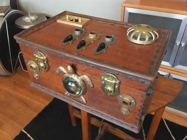 Era importante encontrar la caja correcta. Tenía que ser lo suficientemente grande como para hacer lo que necesitaba, pero no ser demasiado grande. La mirada era demasiado importante. Tenía que hablar conmigo (wow que suena artsy fartsy) pero es cierto. No me di cuenta lo caros cajones antiguos podría ser, algunos eran más de 500 dólares. Encontré este en una tienda de antigüedad. Fue el caso de un sextante náutico en 1911. Falta ese componente importante estaba a la venta y tomé casa por 50 dólares. Todavía no es barato pero el tamaño ideal y la cantidad de desgaste.