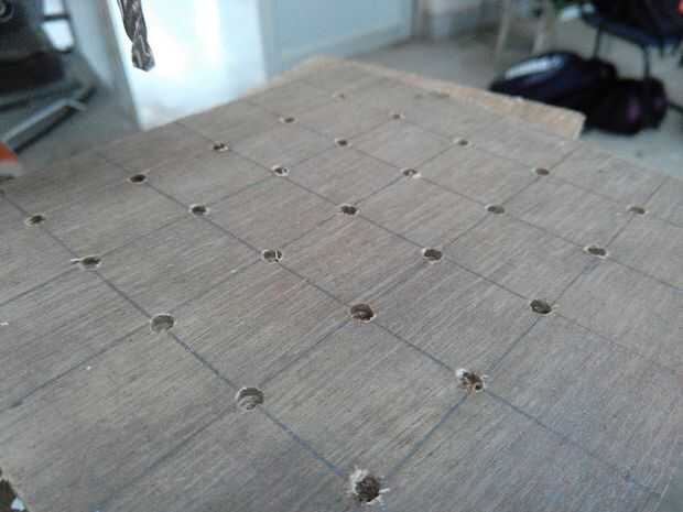 Ahora estamos listos para perforar agujeros en las hojas de forma cuadrada que hemos recién cortamos. Hemos decidido