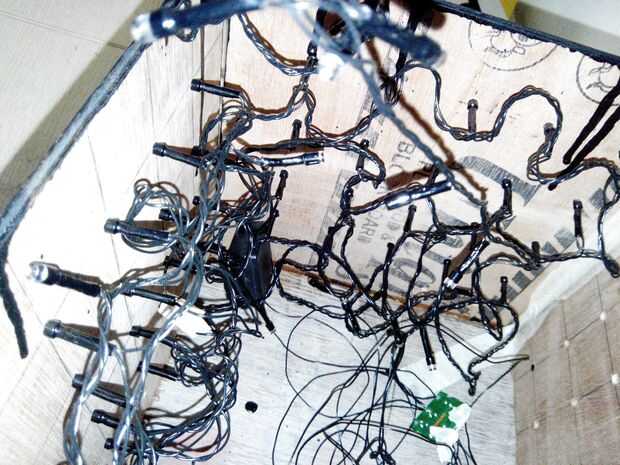 sin nada en la parte superior, empezar a poner el LED, una vez en un momento, en todos los agujeros que