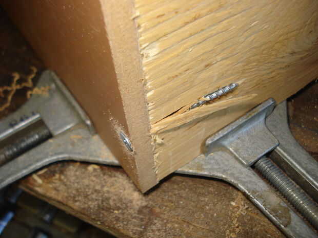 Los lados contra uno de los extremos a tope y fijarlo con tornillos de roca de hoja. Generalmente configurar esto con pinzas antes de apretar los tornillos. Los lados deben ser perforados y avellanados antes de apretar los tornillos. Intenta ser exacta justo en el centro de los extremos (de espesor). Usar 2 tornillos en cada junta, por lo menos 1 pulgada de la parte superior e inferior (para evitar entablillado).