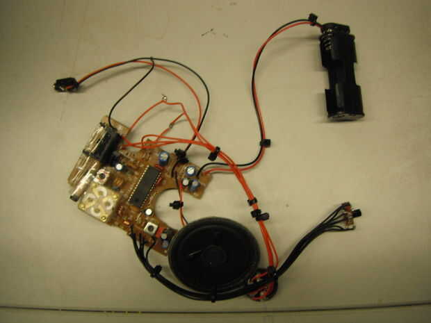 Tomé este circuito de una radio moderna y desoldar la conexión de la batería, AM / FM switch, altavoz, control de volumen, salida de auriculares y el ariel. Luego amplié todo lo anterior a una longitud adecuada en mi radio y mantener cables con sujetacables.