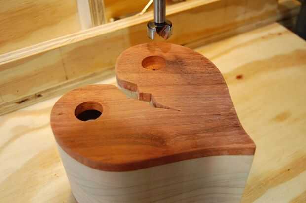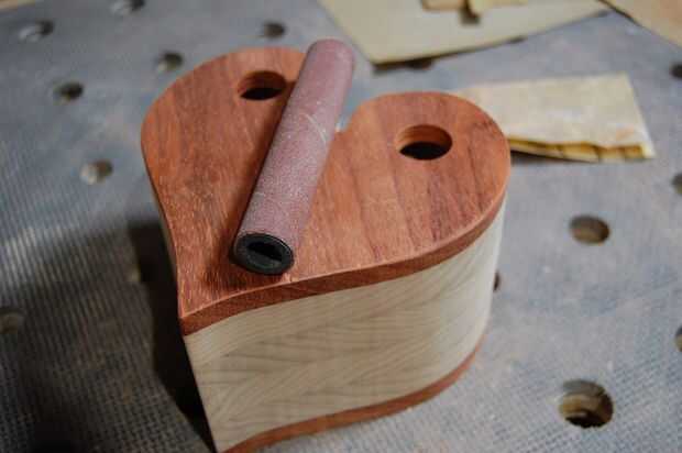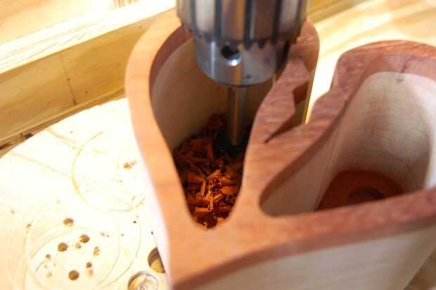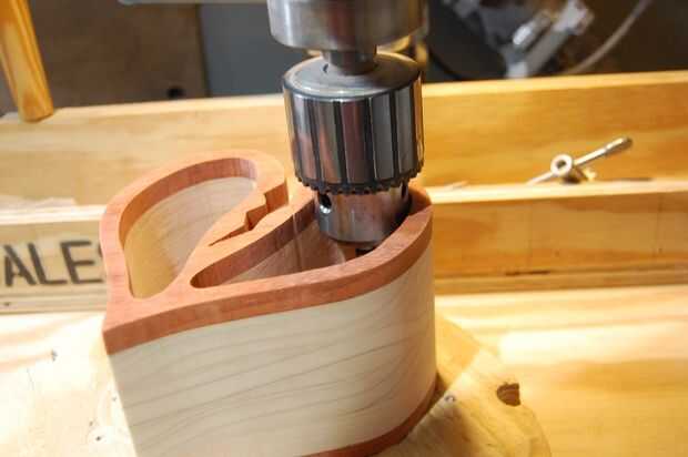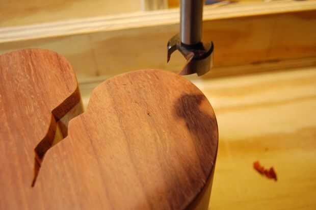 Por mi preferencia personal, he utilizado una broca Fortsner (7/8" en mi caso) y perforados de ambos lados para evitar que sople... seguido de un lijado rápido con un tambor del huso y algunas manos que chaflana