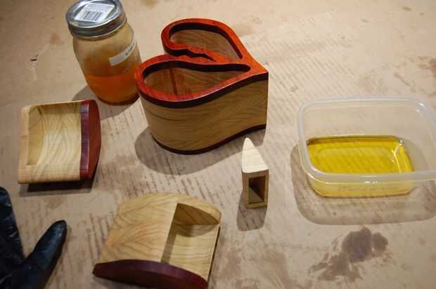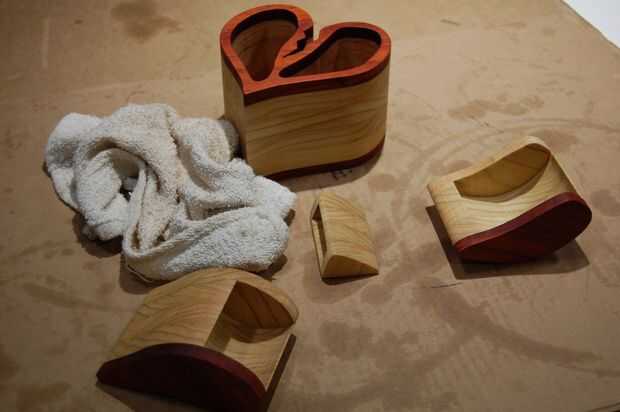 Inicialmente iba a terminar la caja con laca de spray, pero que toma un poco de tiempo... construcción de las capas, dejarla curar, mojado lijar, pulimentar, etc.. Además, no había una manera fácil de rociar todo, como una cara sería faltada siempre colgando las piezas no parece realmente como una opción. Rocía laca en la grieta de centro (vértigo) era solo buscando problemas... problemas en forma de cobertura desigual y funciona.