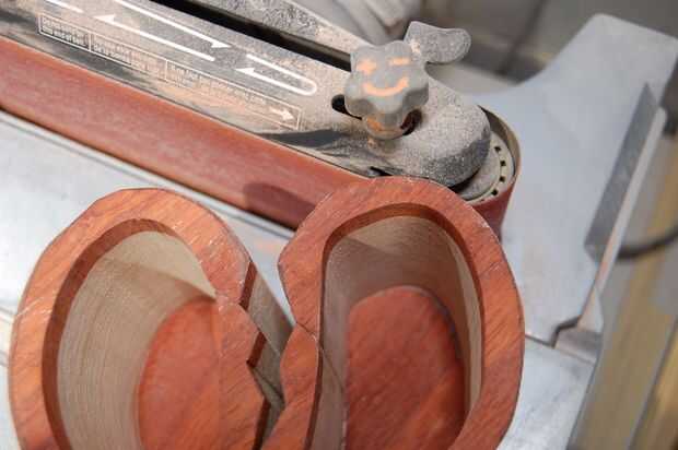 El exterior de la caja general fue formado en su mayoría con la lijadora de banda oscilante con un cinturón de grano 80, pero tenía que ser creativo a la grieta de centro decorativo. Hay una broma allí y mis 14 años de edad es vertiginoso, pero estoy dejandolo ir. Mi solución para este desafío era que una tira fina de madera con aerosol de papel de lija se adhirieron a él.