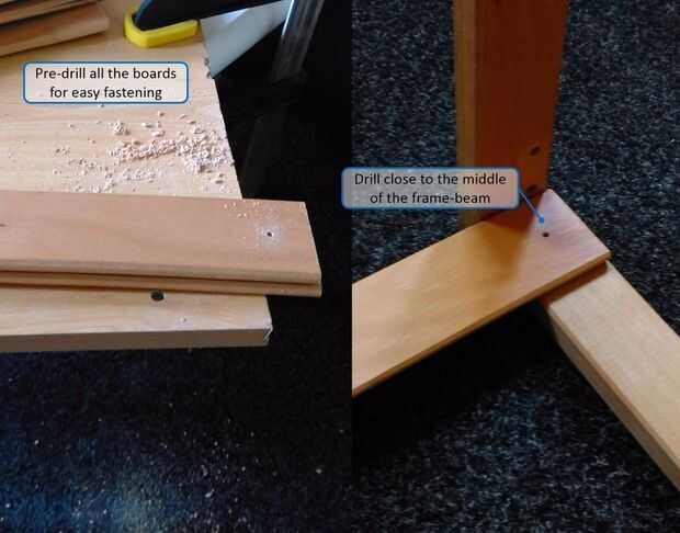 1. Alinee los dos tableros exteriores del piso, marque y perfore previamente los orificios para tornillos.