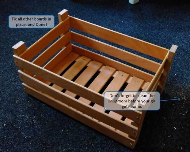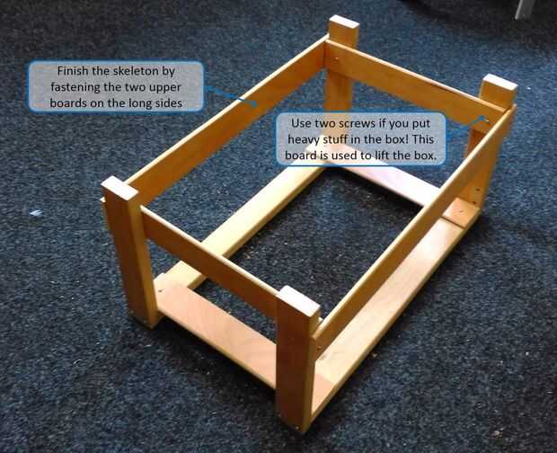 Nota: Si va a poner cosas pesadas en el cajón, poner 2 tornillos extras en cada tablero que se utiliza para levantar la caja! Esto aprendí la manera incorrecta, un tornillo encajado la primera vez traté de levantarlo con un montón de cosas pesadas en ella...