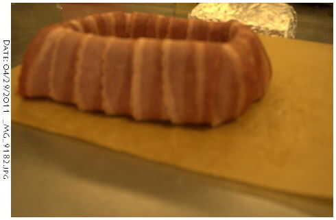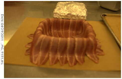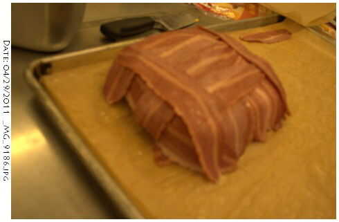 Para la tapa Asegúrese sobre vuelta y tejer su tocino, ayudará a mantener en su lugar