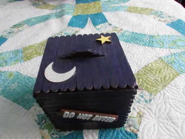4) aprendí que pistolas de pegamento caliente están realmente calientes. También aprendí que cuando un problema se subió fue importante para dar un paso atrás para pensar en las posibles soluciones. Un desafío importante era averiguar cuáles eran las mejores zonas para colocar el pegamento para que los palillos se pegan junto con a crear globos por toda la caja del tesoro. Me siento orgulloso que gasté mi tiempo y energía en algo que realmente quería hacer. Si tuviera que hacerlo otra vez yo probablemente hacerlo más grande y elegir diferentes decoraciones.