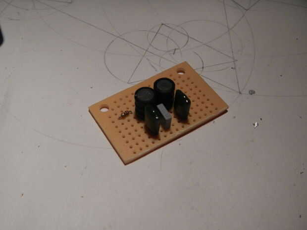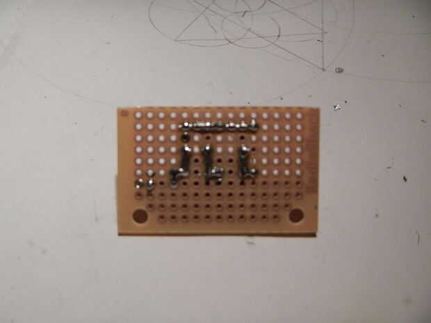 Primero probé a soldar los cables entre sí, pero luego usé un tablero de PC para hacer es más fácil y un poco más profesional. Hace conectar la entrada y salida más fácil y mantiene todos los componentes para el filtro agradable y segmentado.