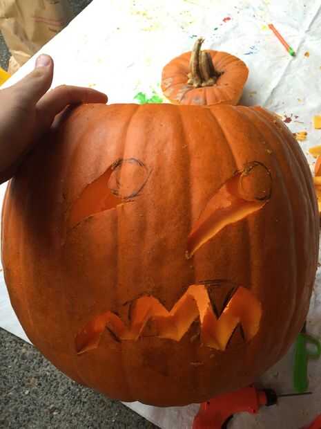 Para esto, primero necesita haber limpiado totalmente la calabaza, la pulpa y todo. Luego corte a lo largo de la silueta que dibujó en el lápiz de cera. Asegúrese de no cortar los dientes demasiado fino, o raspando la piel de ellos podría resultar en el diente siendo halado. Utilizar un básico tallador de calabaza para el corte.