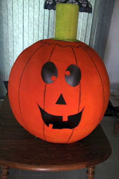 Ahora utilice un cuchillo X-acto para tallar cuidadosamente la cara de tu calabaza. Hice papel recortes de ojos, nariz y boca y aquellos sobre la calabaza había trazada con un lápiz. Tenga paciencia ya que toma algún tiempo para cortar a través la maché de papel grueso.