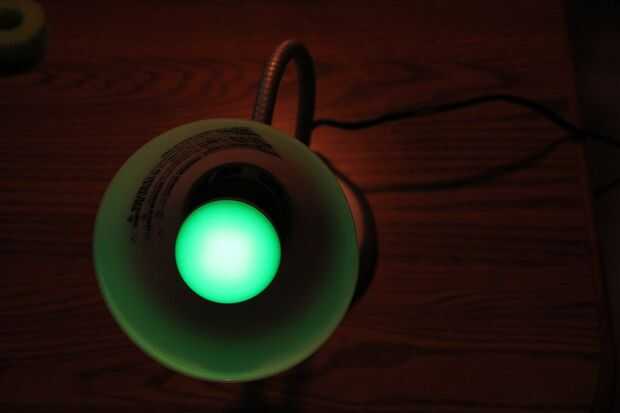 Poner la bombilla LED de flujo en la lámpara a probar su creación. Fuera de la caja, sin necesidad de ninguna programación, el bulbo flujo parece una bombilla normal de 40 Watts con un color cálido.