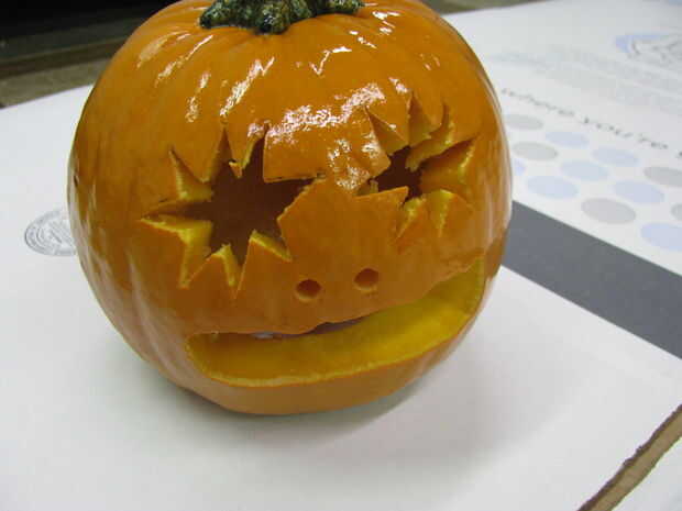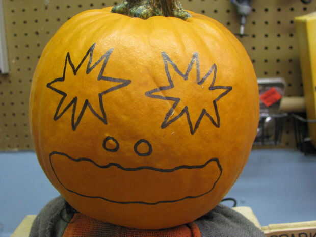 cada año mi esposa y yo tiro una calabaza talla partido el fin de semana antes de Halloween. Utilizamos nuestro sótano inacabado para el evento donde tenemos amigos sobre tallar calabazas, comer, ver películas y participar en general caos de Hallowee