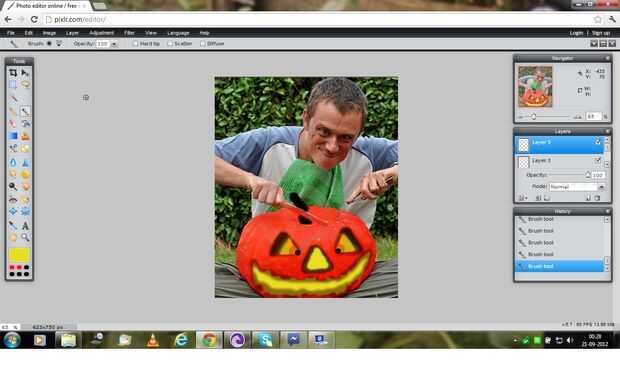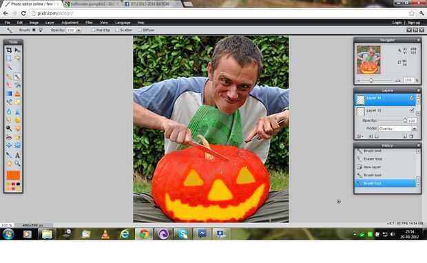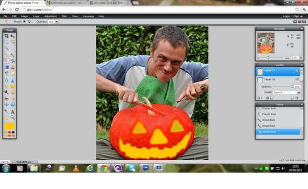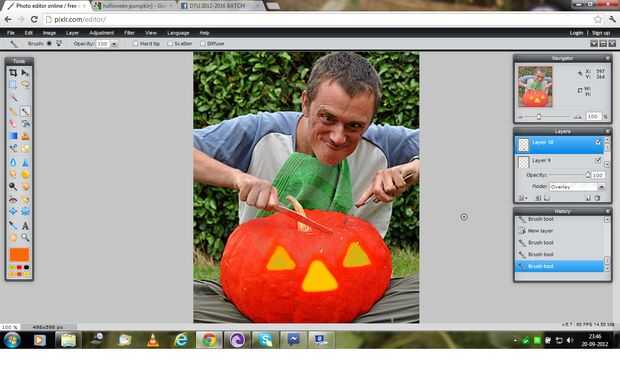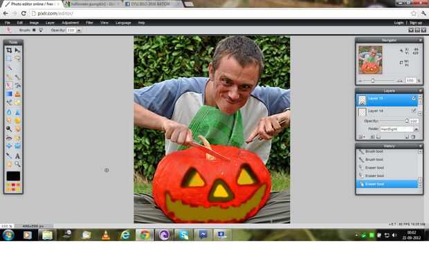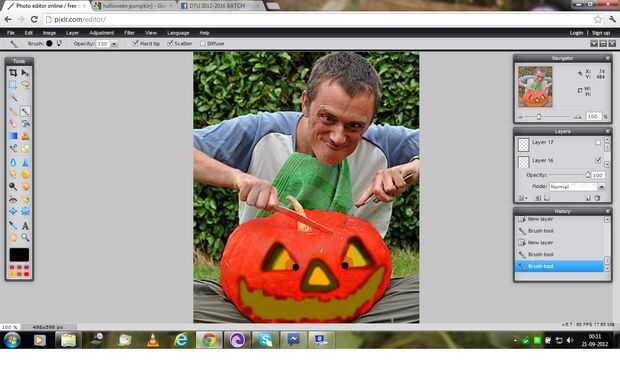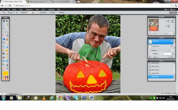 10. utilizando las herramientas de cubo lasso y pintura también hizo la punta de la calabaza negra