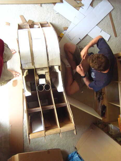 El primer método utiliza un tubo de embalaje para proporcionar apoyo vertical. Cortar un tubo de embalaje a una altura aproximada (~ 13-14.). Cinta de algunas partes de chatarra para las piezas superior e inferior (se verá un poco como una "I" capital al final). Estas piezas de chatarra le ayudará a apoyar y evitar que el extremo circular del tubo de perforación a través de la parte superior o inferior. Utiliza un tubo largo para hacer dos de estos soportes y había utilizado por el carril interior.