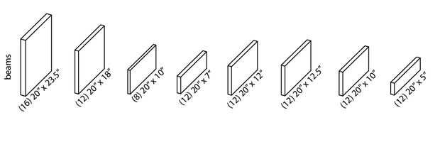 La viga frontal es 20.0 x 5,0 x 1,5 (en). Para formar este rayo cortado aproximadamente 12 placas rectangulares que son 20.0 x 5.0 (en)