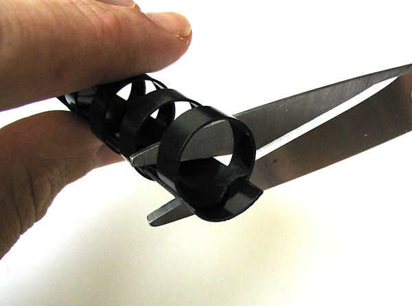 Necesita poco de plástico bastante rígido que es fina, elástica y curvados. Es la columna vertebral de una espiral de anillas. Cortar uno de los lazos