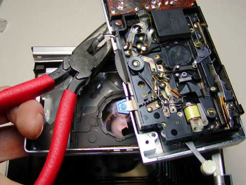 Cortar el cable entre el la cámara y el circuito y retire de la lente. Saltar la lente en la parte posterior de la Asamblea de lente. Retire los tornillos que sujetan el circuitboard al frente de la Asamblea de lente. Quitar piezas de exceso de la parte delantera y trasera de la circuitboard (ver fotos
