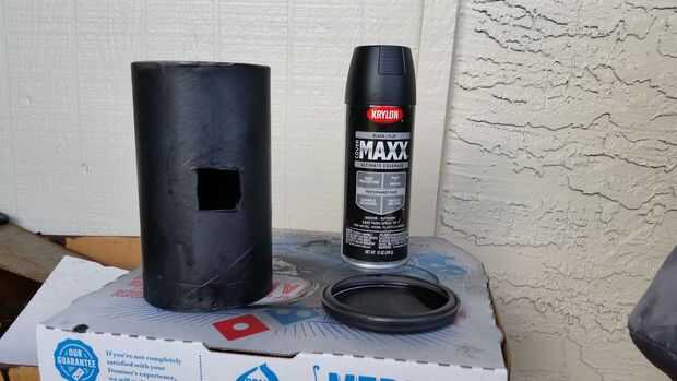 2. Pintar negro! Pintura de aerosol el interior y el exterior del tubo negro. También pintar la tapa.