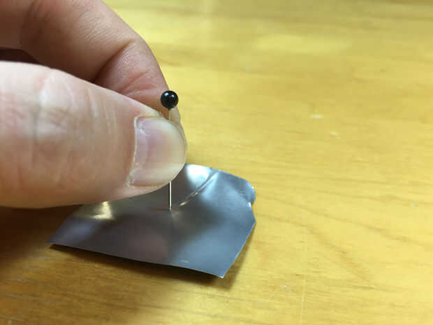 Utilizar la aguja pin para perforar a través de la pieza de aluminio. Para ello, girar la aguja y hasta llegar a través de.