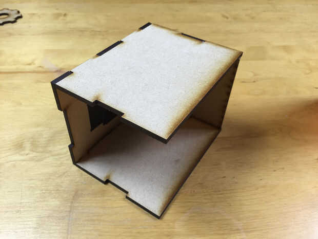 Continuar el montaje de la pieza exterior de la cámara. Use pegamento para madera para montar las piezas laterales diferentes juntos como lo hizo en el paso anterior.