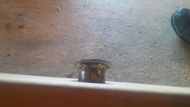 El tubo vertical pasará por un agujero en el centro muerto de la 2 x 6 que es ligeramente más grande que el tubo sí mismo.