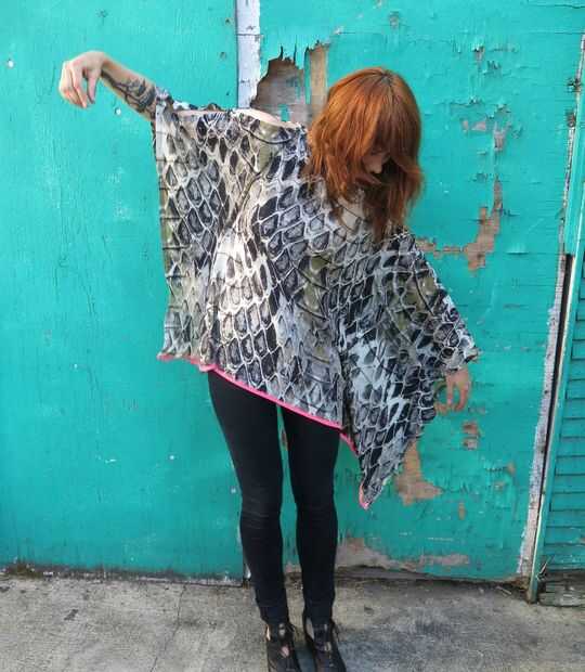 Cada vez que intento comprar ropa en las tiendas estos días por que yo estoy constantemente molesto el hecho de que casi todo a un precio razonable es hecho de algún material sintético barato. Estoy un poco de un snob de tela y realmente odio usar poliéster, pero si quieres una prenda de seda o incluso algodón, estos días, no vienen barato. Con este diseño, puede comprar dos yardas de una hermosa seda y crear una ropa increíble a un precio razonable. Conseguí este reptil gigante impresión de seda para solamente $5/ yarda en el barrio de ropa! No es que este diseño también no verse bien en una gasa polivinílica agradable demasiado, prefiero solo seda cuando tengo una opción. Esto sería también un gran diseño para utilizar si usted quiere teñir o imprimir una imagen única en su propia tela. Puede crear algo realmente bello por obtener una impresión personalizada de un servicio como Spoonflower.
