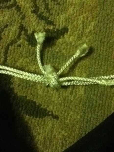 Hacer un nudo cuadrado para garantizar las dos cuerdas de cada lado.  Para saber cómo hacer el nudo el vídeo cerca.  Coloque el elemento que desee ocultar en los orificios de la tubería.  Recoger la bolsa y usted podrá llevar todo con el elemento interior.  Gracias por ver por favor like y favoritos.  Ah y por favor Mirad el video, y si puede por favor suscribirse a mi canal.