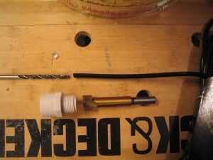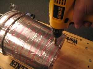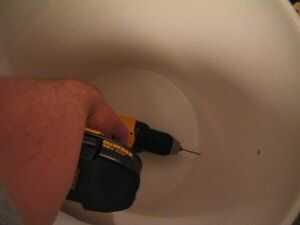 Voltee el cubo ahora. Podrá ver las ubicaciones de los agujeros piloto. Broca para taladro de interruptor a un 3/4". Cualquier cosa que se hará un agujero de 3/4" a trabajar. Perfore los agujeros de drenaje y relleno.